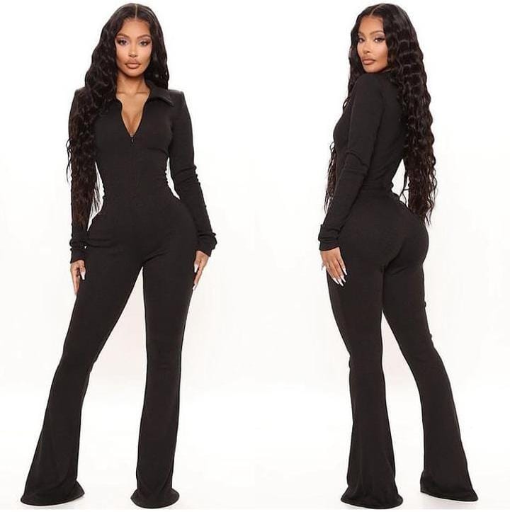 Enterizo manga larga con cuello y cremallera invisible de tela gruesa y licrada.